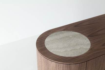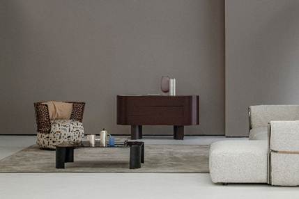 Completing the collection is the Lip sideboard, a bold and sculptural piece defined by generous volumes and refined detailing, where curved forms and marble accents come together to create a striking visual statement.