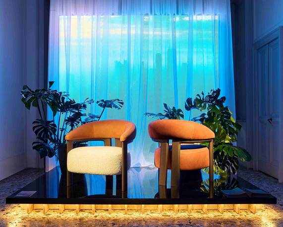 Expanding beyond seating, the collection introduces standout pieces such as Dune, where sculptural surfaces and fluid forms capture the interplay of light and texture, creating a dynamic visual experience inspired by natural landscapes.