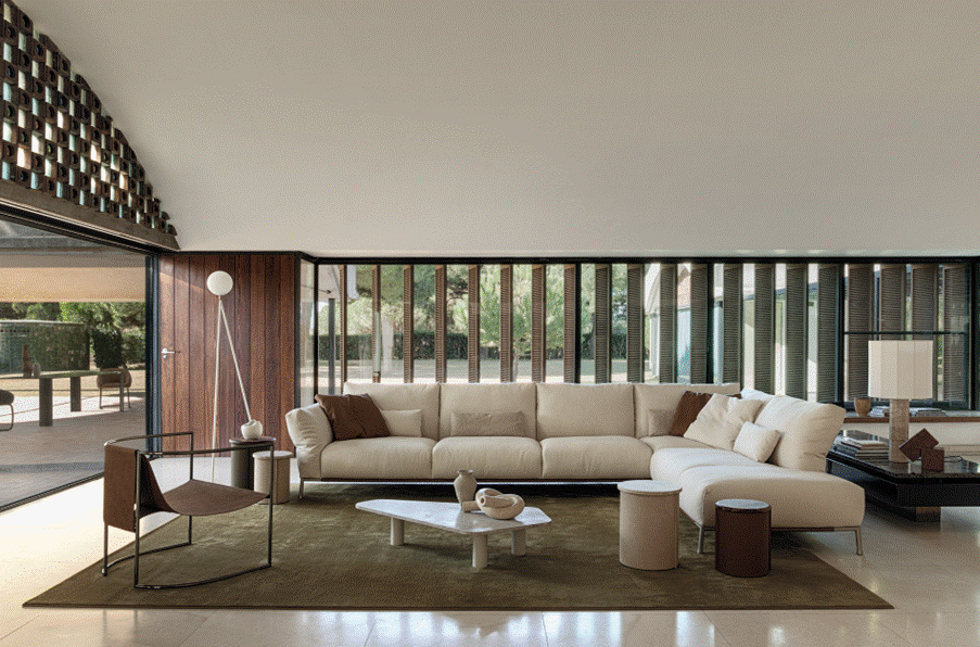 The first collection, conceived as the initial expression of the brand’s vision, introduces Flaer’s design language through seating systems with soft architectural lines, sculptural tables, refined chairs, and lounge pieces designed for enveloping comfort. Together, these pieces form a coherent design grammar rooted in Soft Elegance.